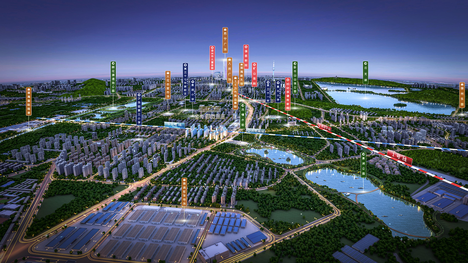 金为·翠微朗庭位于淮海新城中芯生活区,执掌新淮海路黄金主轴,拥一湖三园多组团环抱,双地铁畅达全城,三大商圈、优质医疗、名校环伺,享受城市多重红利。项目占地面积约7.38万方,总建面约23万方,分两期开发。
