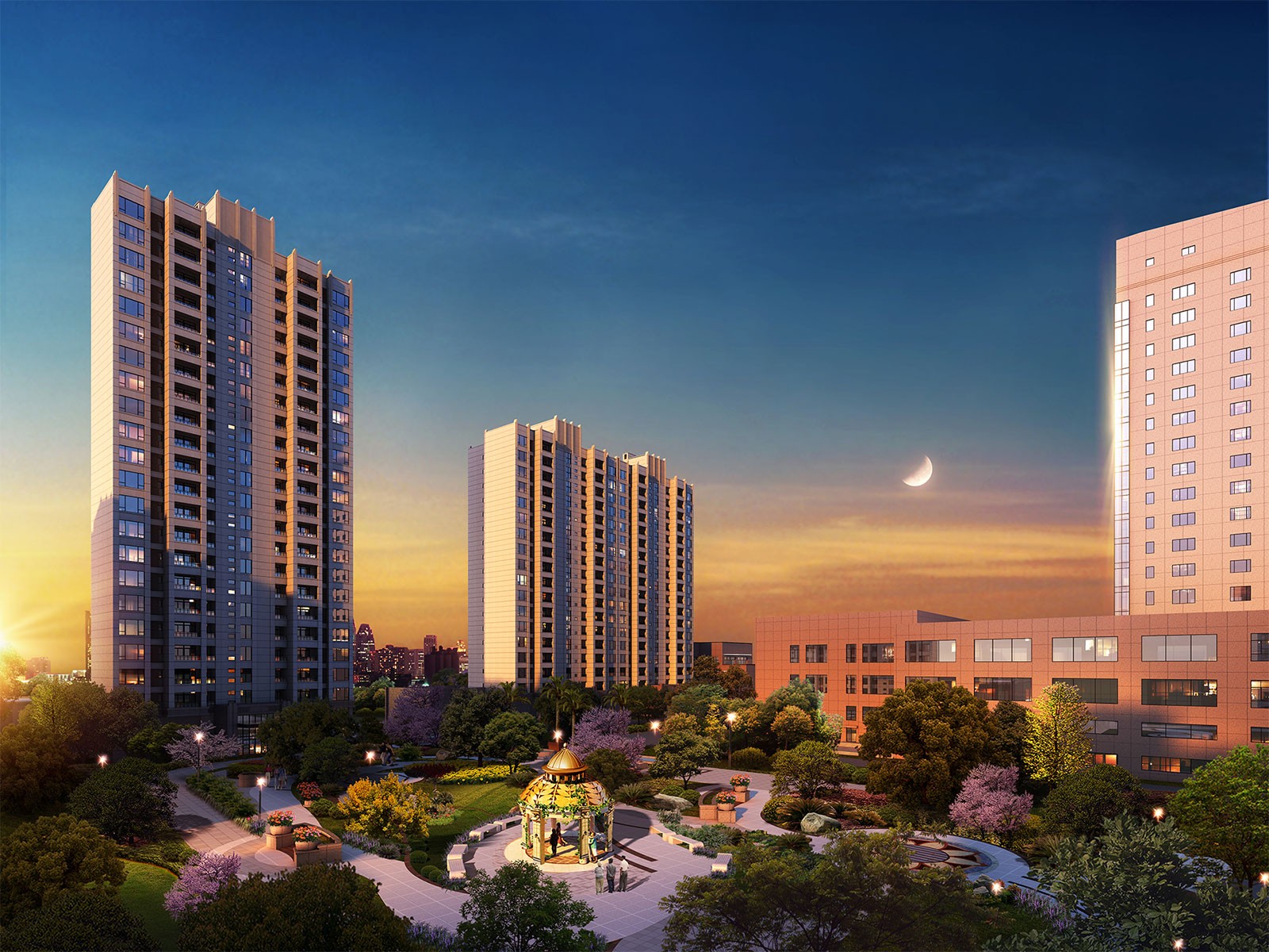 金泰·中央银座位于金泰国际酒店旁项目以 五星级豪宅标准、独享万方中庭景观、布局 严密、因地制宜、随形造景、观承都市新生 活,刷新南部人居新高度。